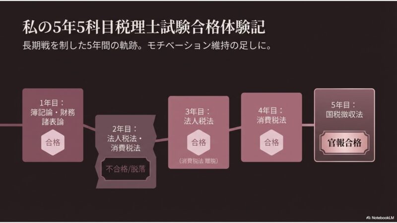 私の5年間の税理士試験合格までの過程を表にまとめました。