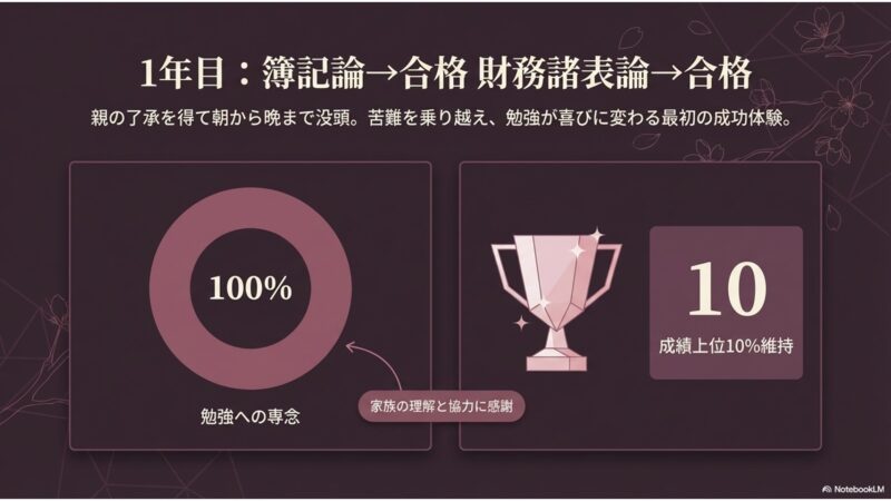 とくに簿記論が得意で、専門学校での成績は上位10%前後を維持し、答練の第三問で満点をとった経験もあります。