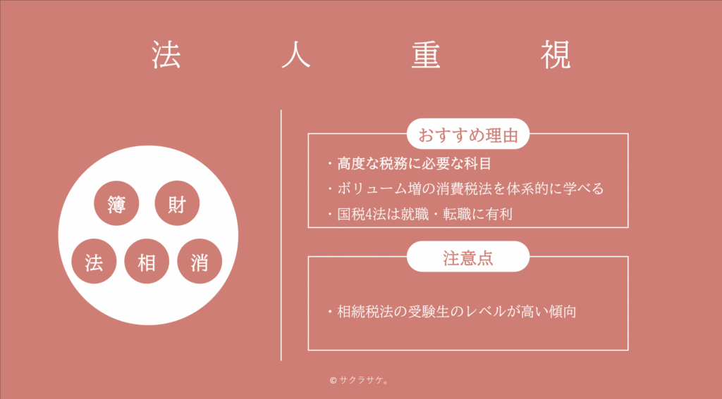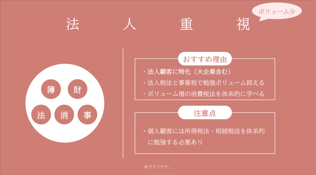 | 法人重視(ボリューム少) | 簿・財・法・消・事 |