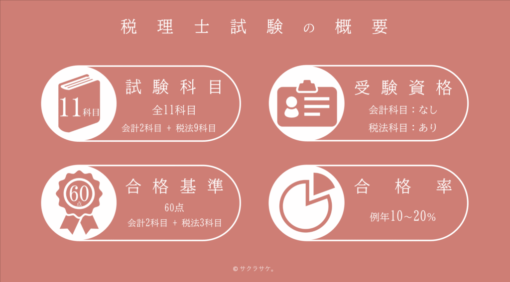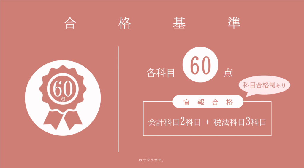 なお、税理士試験は科目合格制であり、受験者は一度に5科目を受験・合格する必要はなく、1科目ずつ受験・合格してもよいです。