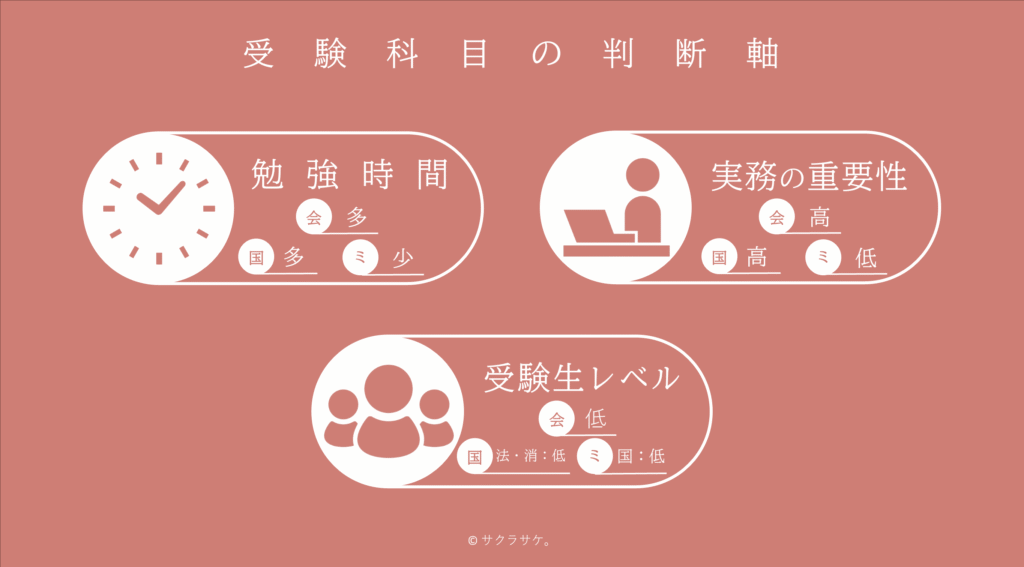 勉強時間・実務での重要性・受験生のレベルを考慮したおすすめ受験科目の組み合わせ8選をくわしくご紹介していきます。