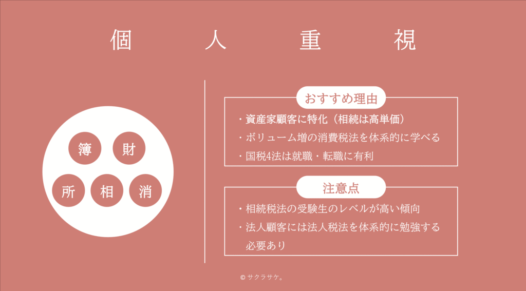 - いきなり相続税法などの受験生のレベルが高い科目を受験すると挫折してしまうから
