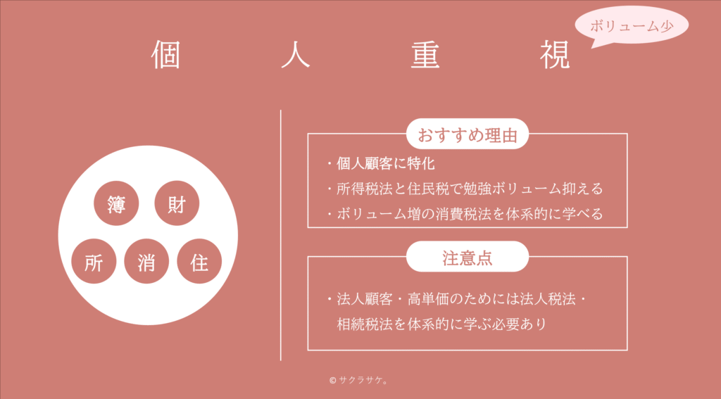 | 個人重視(ボリューム少) | 簿・財・所・消・住 |