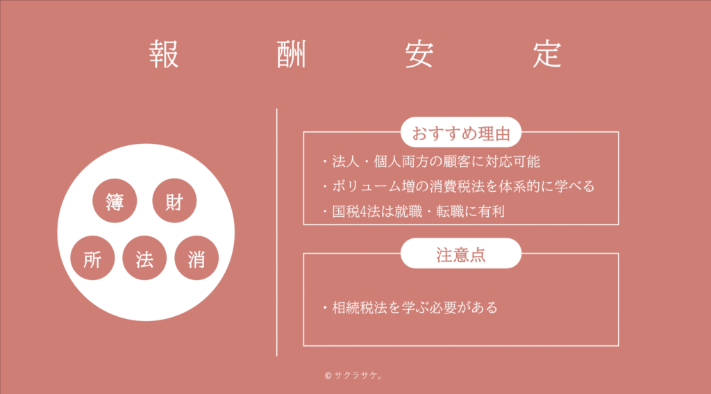 国税4法しか受験しない方であれば、会計科目+消費税法の受験が選択肢になります。