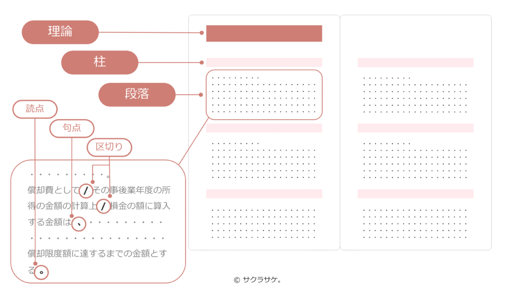 文中の区切りや句読点などの短い文章から、段落、柱、そして理論1題と少しずつ覚えていきましょう。