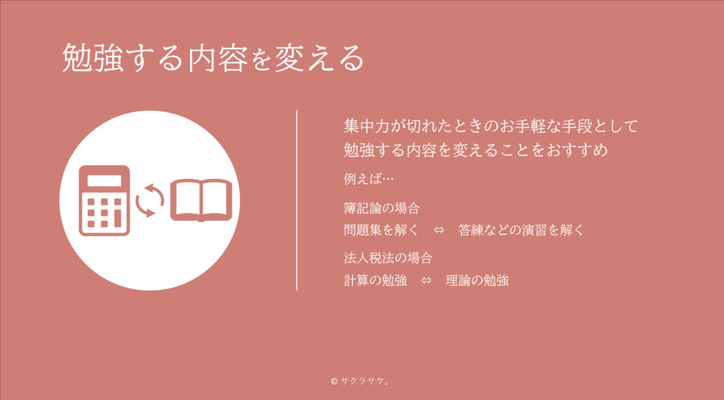 もっと手軽な手段として、勉強する内容を変える方法をおすすめします。