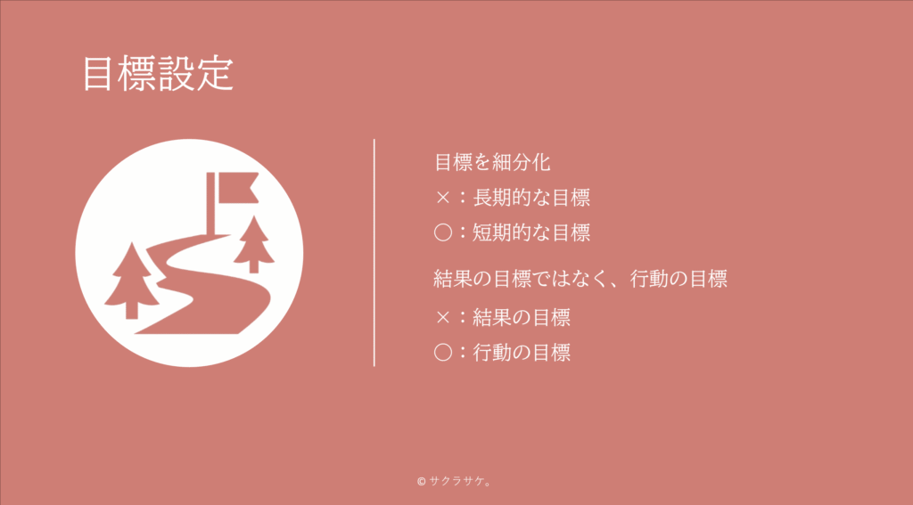 - 結果の目標ではなく、行動の目標を設定
