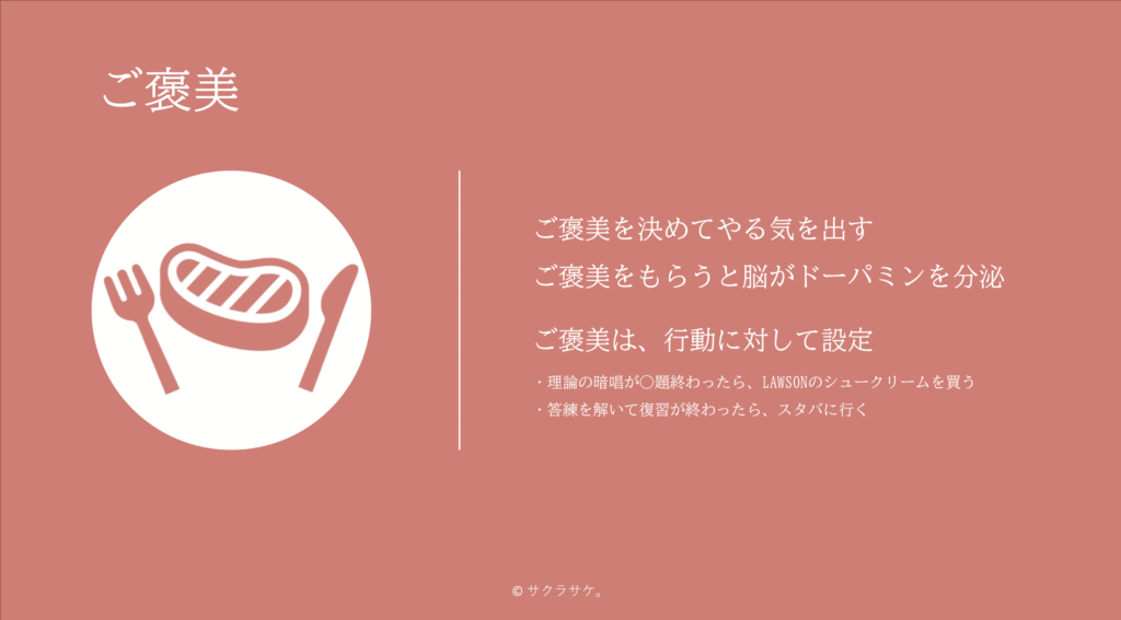 行動に対してご褒美を設定することで、あなたがすべき勉強が明確になります。