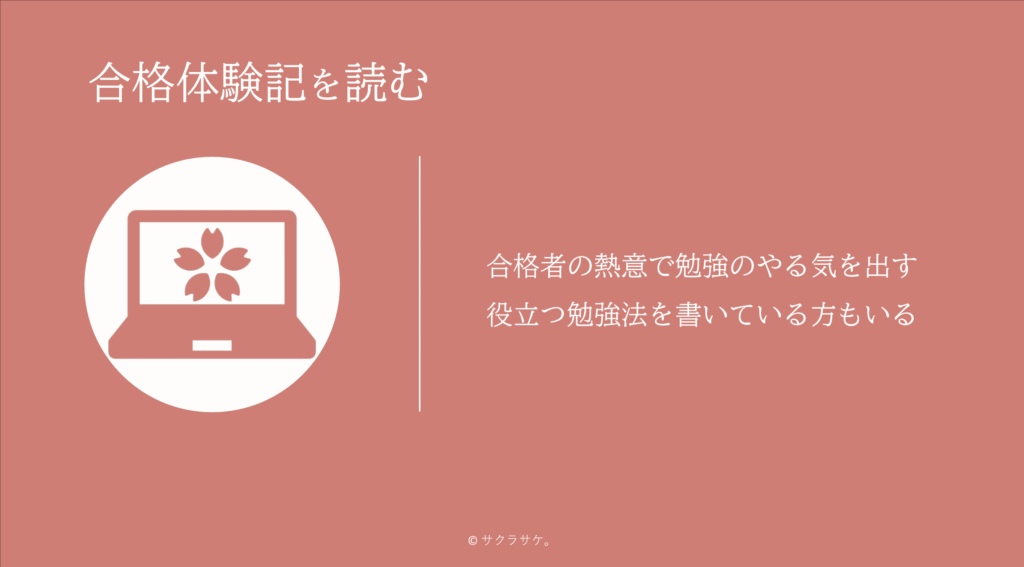 合格体験記を読むことで、合格者の熱意を感じることができ勉強のやる気を引き出すことができます。