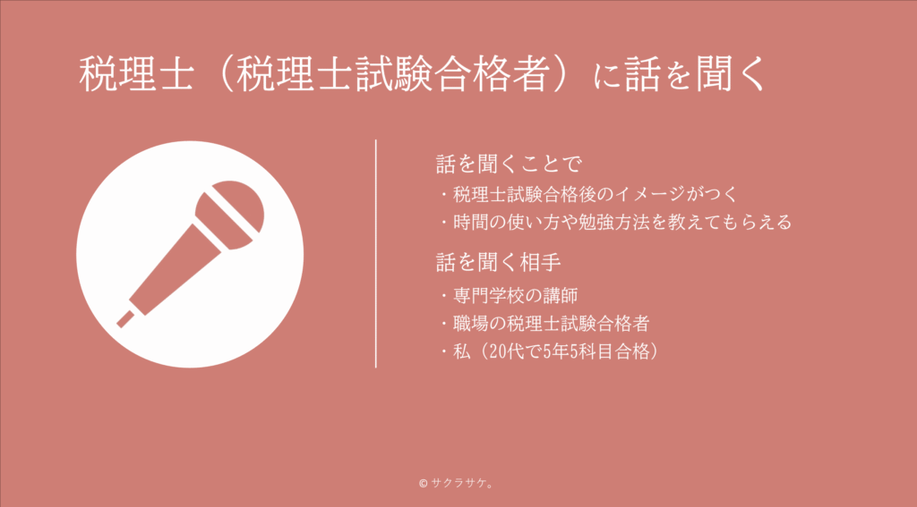 身近に税理士や税理士試験に合格した方がいらっしゃったら、ぜひ話を聞いてみてください。